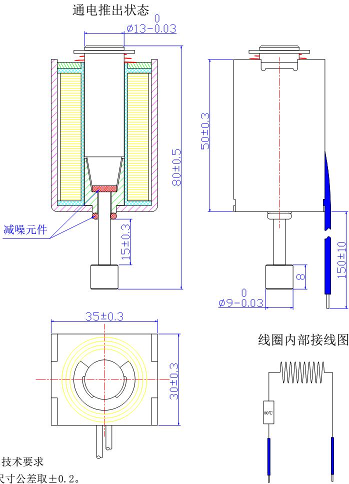 電壓:DC24V 電流:1.5A 功率:36W 行程10mm時力量大于1KG,行程15mm時力量大于400克。