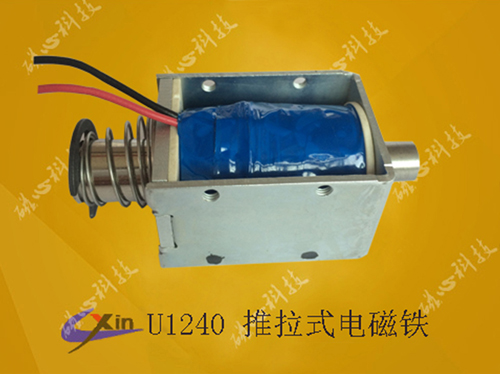 磁心科技電磁鐵廠家大批量生產推拉式電磁鐵U1240,電磁鐵廠家從產品零部件的加工工藝到制造工藝每個環節配置專門的品管監控,在保證產品品質的基礎上