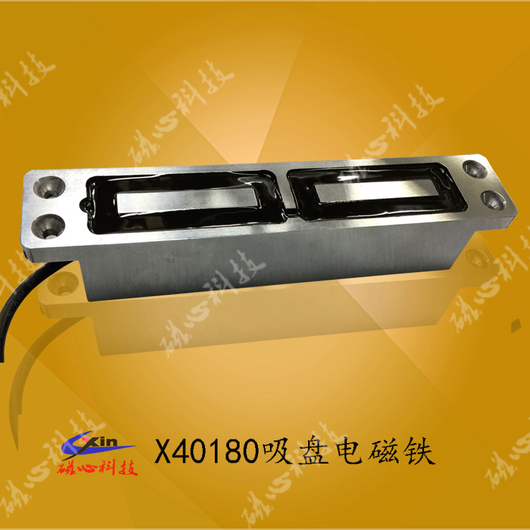 X40180 是磁心科技研發、定制的一款方形自保持式電磁鐵,內置永磁鐵,在產品不通電的情況下具有磁性,當線圈通電時,由電能生成磁場抵消永磁鐵的磁場達到消磁的目的,