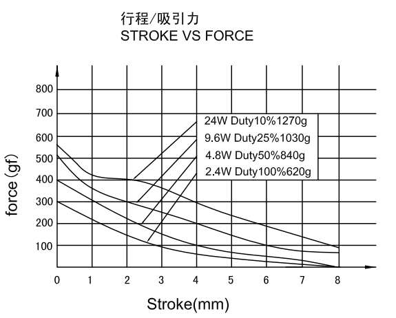 行程和力量:行程5MM時,力量可達到600克 具體情況根據客戶的使用而定