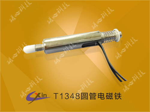 東莞磁心科技生產、銷售T1348圓管電磁鐵,T1348圓管電磁鐵結構小巧,直徑13mm,長度48mm,細長的結構決定了其性能:行程長,力度偏小。主要運用于鍵盤測試機